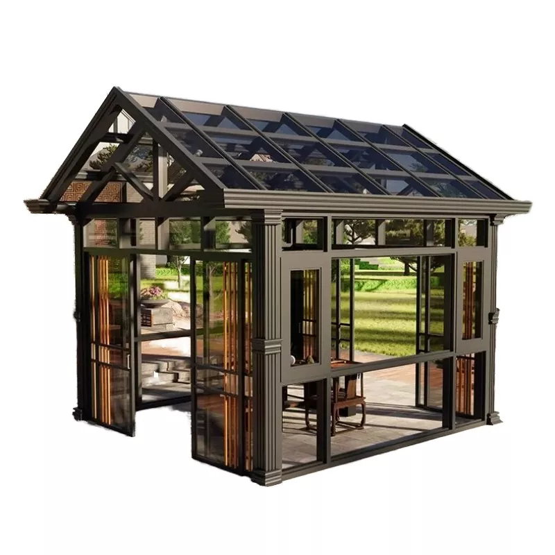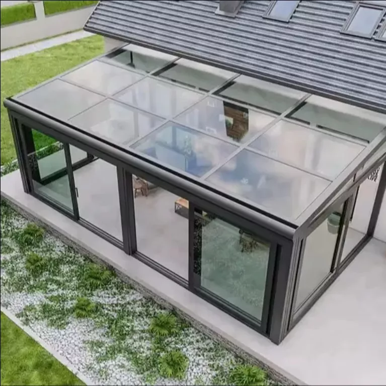 Сончевата соба од алуминиумска легура прифаќа целокупна рамка + стаклена композитна структура. Колоните и гредите се фиксираат со прецизни конектори, со запечатување и водоотпорна обработка на зглобовите; 3%-5% наклон за одводнување е резервиран за врвот стакло, усогласено со скриени дренажни канали за да се избегне акумулација и истекување на вода; боите на рамката може да се прилагодат, поддршка на различни површински третмани како што се матирано, шампањско злато и кафе, приспособување на различни архитектонски стилови. Комбинирајќи ја гореспоменатата изработка и предностите, целокупниот дизајн ја балансира практичноста и безбедноста и естетика, а може прецизно да се прилагоди според димензиите на терасата.