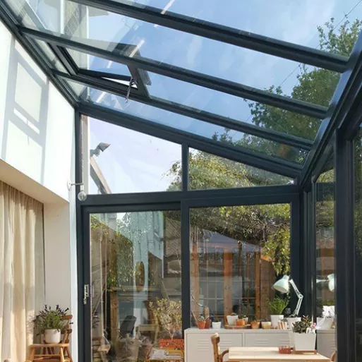 · Приспособливост за приспособување: поддржува приспособени форми како што се заоблени, наклонети и рамни покриви, со повеќе опции за боја на рамката, вклучувајќи матирано, шампањско злато и кафе, кои прецизно можат да одговараат на архитектонските стилови на различни сценарија како на пр. вили тераси, дворни простори за одмор и комерцијални потпорни простори, постигнување на единство на естетиката и практичност.